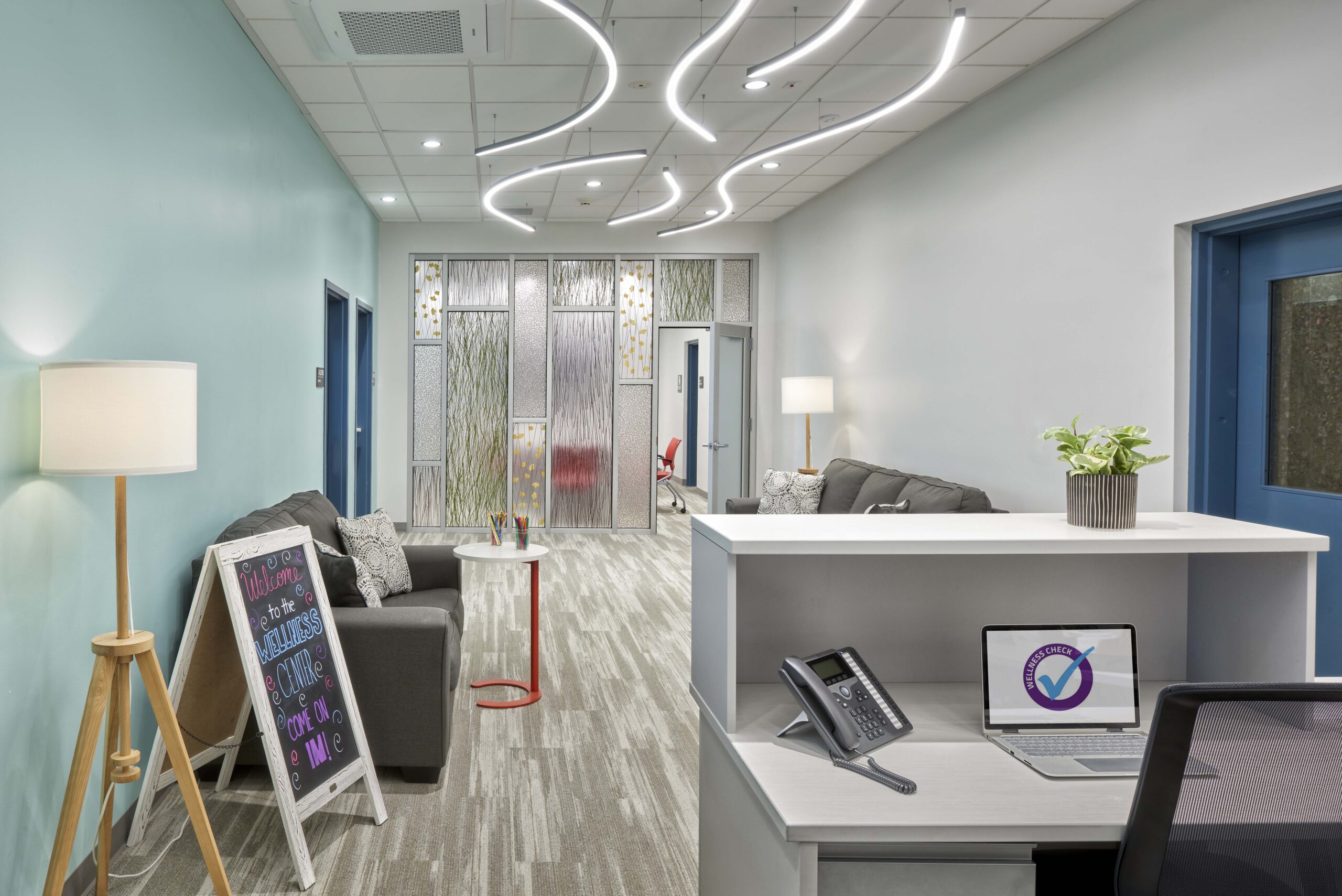 Designed to complete the new front face of the campus, the building connects to the adjacent student commons and existing science building, and opens onto a new student gathering plaza. Glass walls throughout the facility allow visibility into STEAM activities, promoting engagement and curiosity among the broader student body.